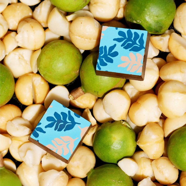 The praline is what the macadamia nut was destined for. You can almost hear the crack of the shell in the quiet valley and those wavy leaves rustling with an ocean breeze. Our Macadamia Praline features only the finest buttery-crunchy macadamias and cocoa in this indulgent chocolate treat.